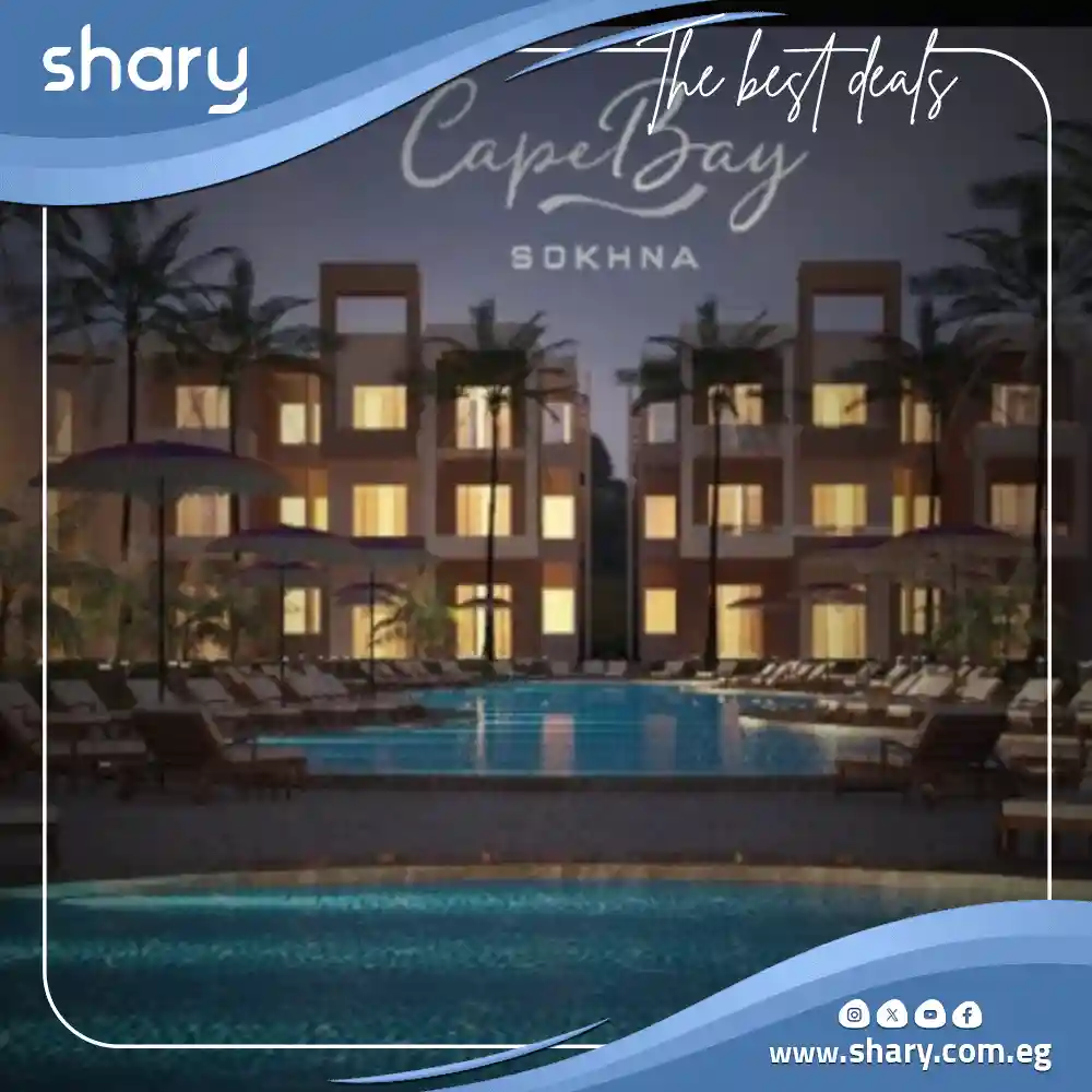 - Cape Bay Sokhna is built on a large area of 160 acres, and it includes a variety of units such as chalets, duplexes, and studios.