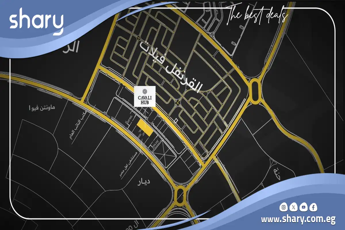 - Main roads: Cavali Hub Mall is close to Suez Road and El Teseen Axis, in addition to its proximity to Ben Zayed Axis.