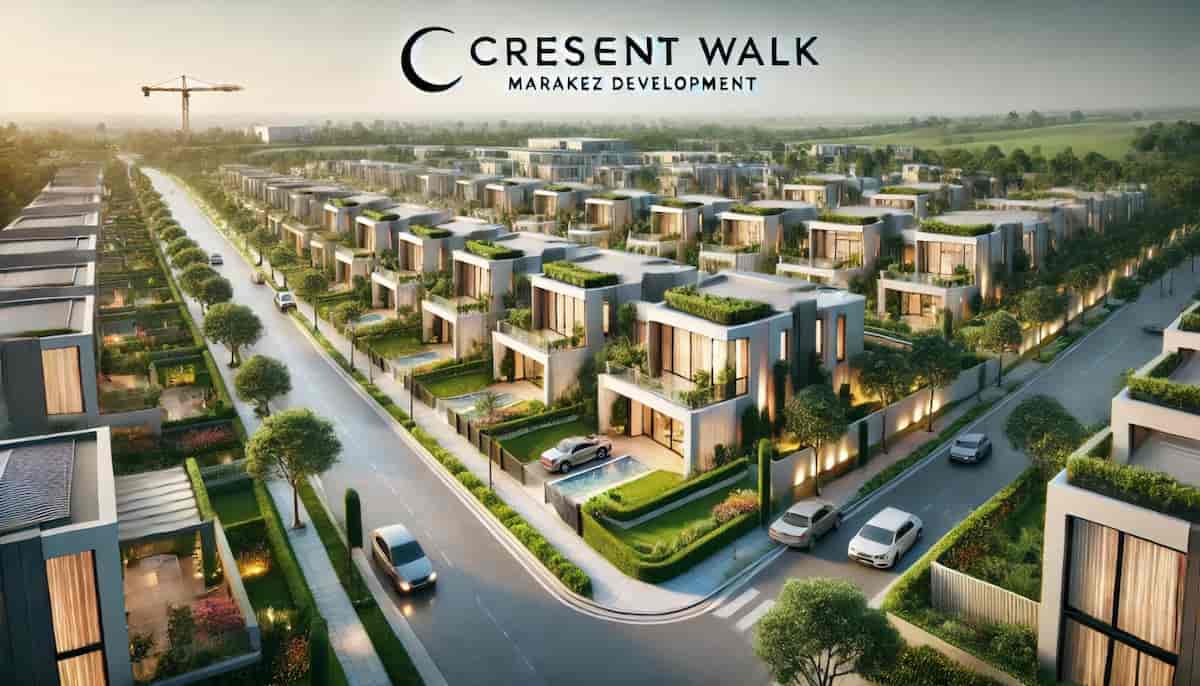 - Crescent Walk Marakez Compound features a mix of elegantly designed apartments and villas, in addition to garden apartments with stunning views of lush greenery.