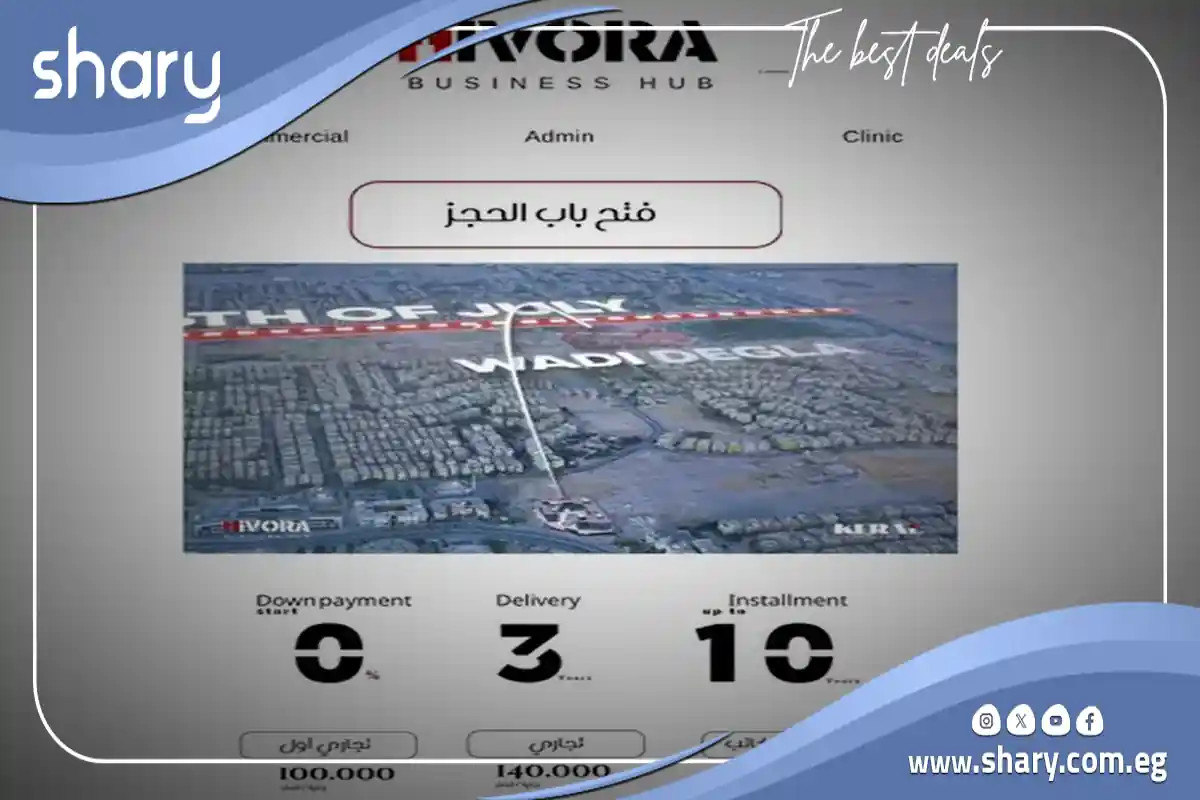 The prices of Hivora Business Hub 6 October are highly competitive, with meter prices starting from EGP 75,000 for clinics and offices. Even more attractive are the flexible payment plans extending up to 10 years, making ownership easier and more accessible for serious investors. Take advantage of this exceptional opportunity and secure your unit now before prices rise.