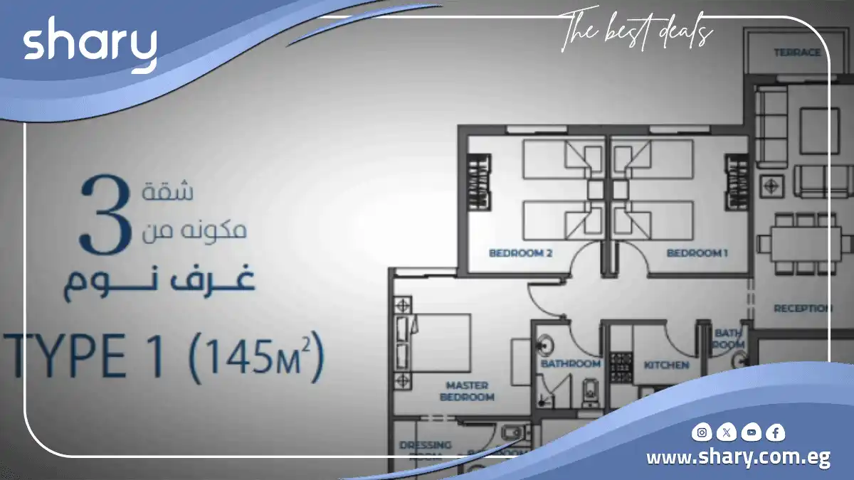 - 3-Bedroom Apartments: The space of Lagoons apartments for sale with 3 bedrooms starts from 145 sqm.