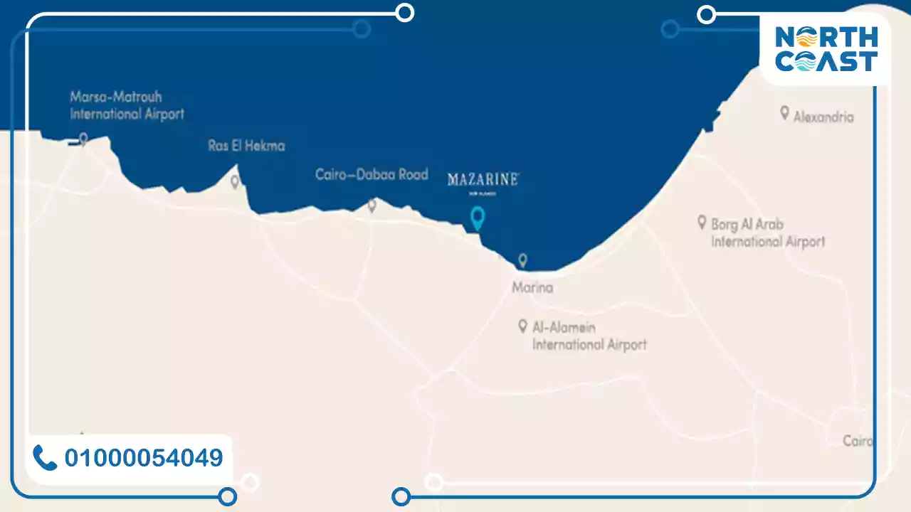 The location of Mazarine New Alamein is one that meets all customer needs due to its proximity to all key landmarks and vital areas, providing luxury, comfort, and a successful investment opportunity for clients.