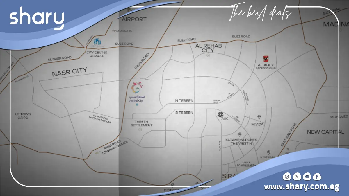 - Cairo Festival City: One of the top entertainment and commercial destinations near Sira Project.
