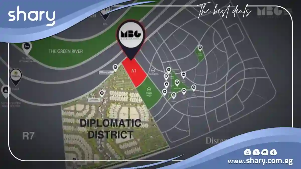 يتمتع Diplo East MBG Diplomatic District بموقع استراتيجي يمنح سكانه سهولة الوصول إلى مختلف المناطق الحيوية مما يعزز من تجربة السكن ويزيد من قيمة الاستثمار داخل المشروع.